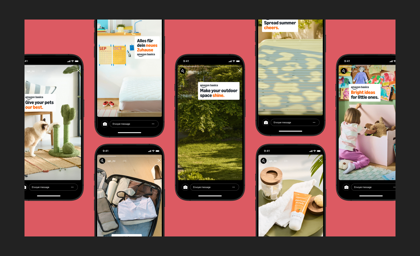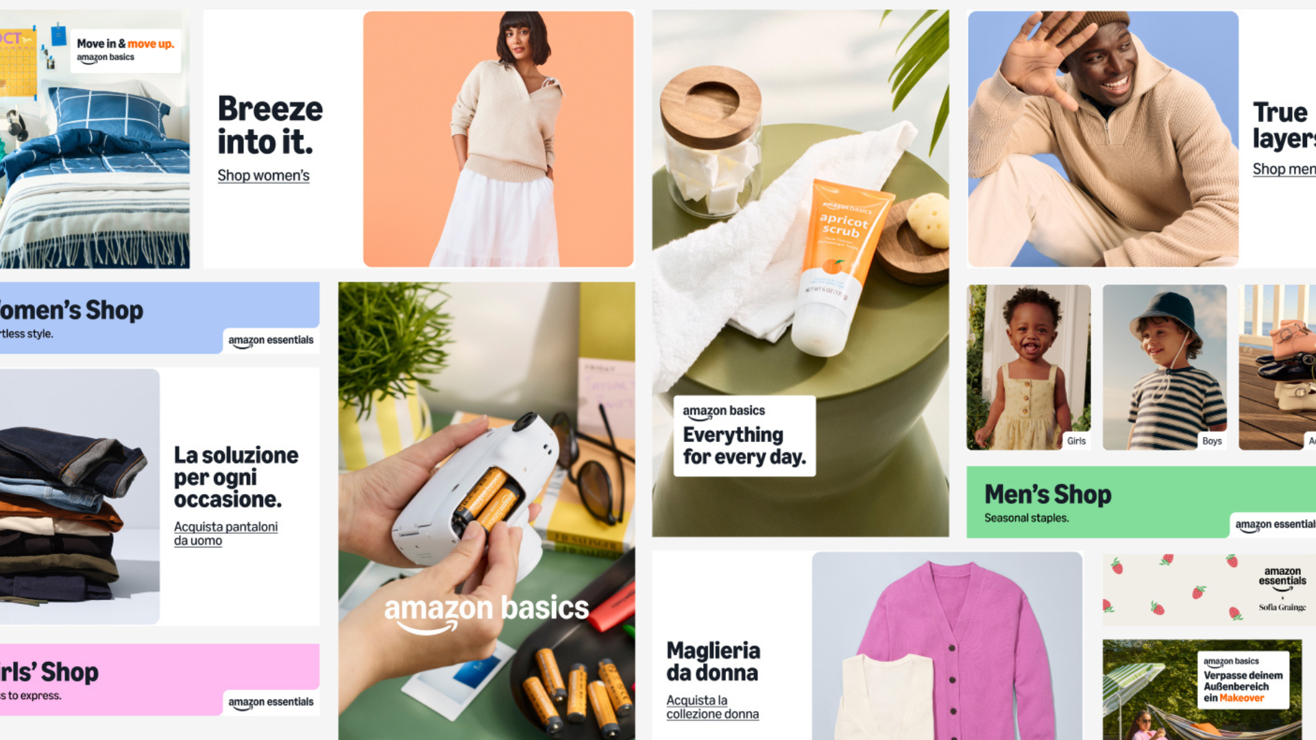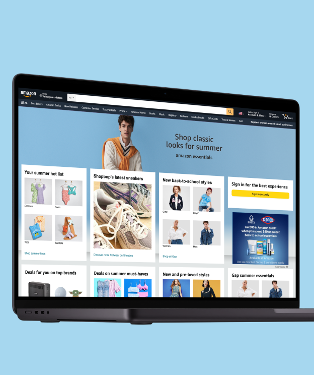 We took on the challenge by transitioning Amazon’s operations to SGK in just 60 days, ensuring no disruptions. Our process included an immersive discovery phase to align expectations and optimize workflows. Through leveraging automated processes and Figma, we maintained Amazon’s robust and detailed brand guidelines, translated marketing copy to remain culturally relevant, and produced assets for multiple campaigns for Amazon Essentials, Amazon Basics and byAmazon.